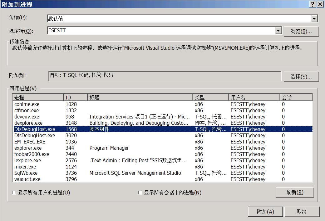 在MsgBox出现后,将VS_A加入到DtsDebugHost.exe中