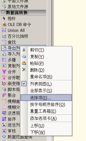 在BIDS中新建一个SSIS包,这时在设计数据流工具箱中还看不到新开发的组件,右击工具箱,选“选择项”。