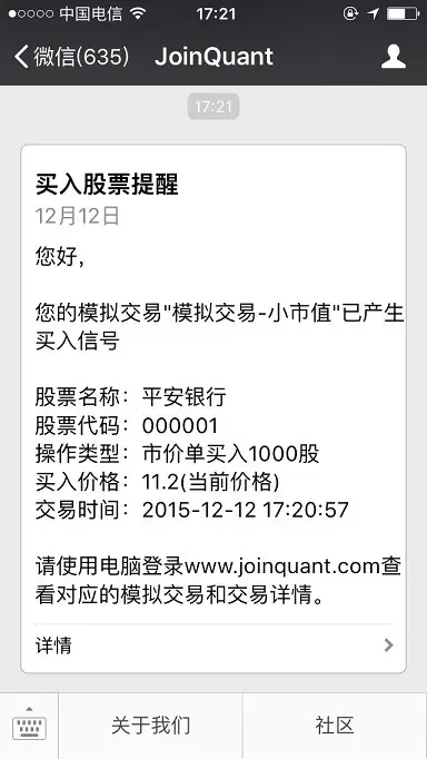当策略买卖操作,微信会收到信号提醒类似下图。
