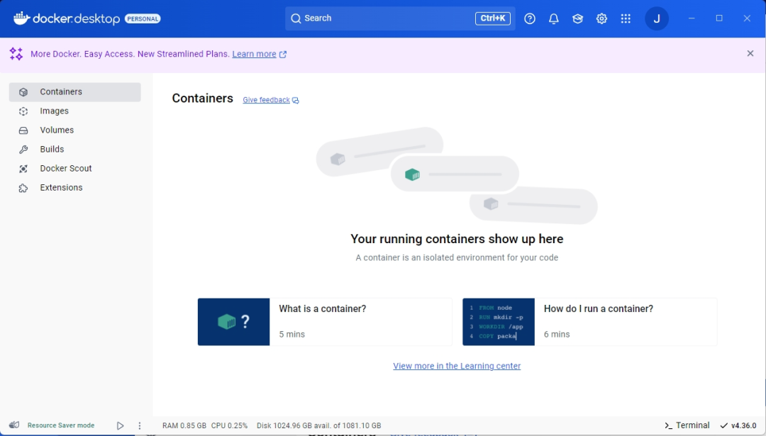 一路点击下一步安装即可,因为docker会用到hyper-v,如果电脑没开启hyper-v,可能会需要重启一次。安装完成后的界面如下图: