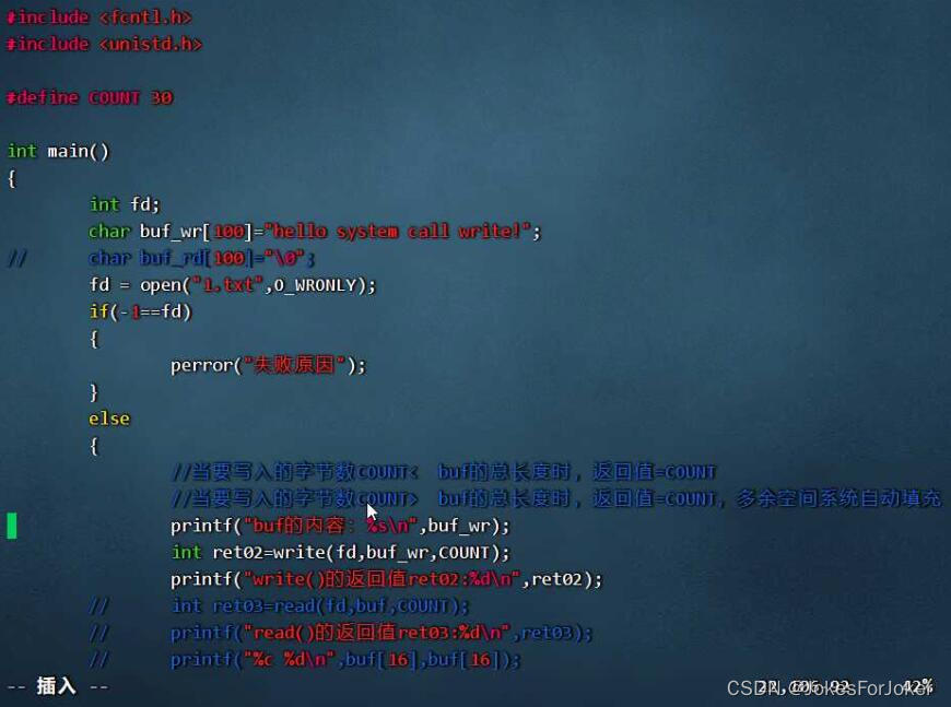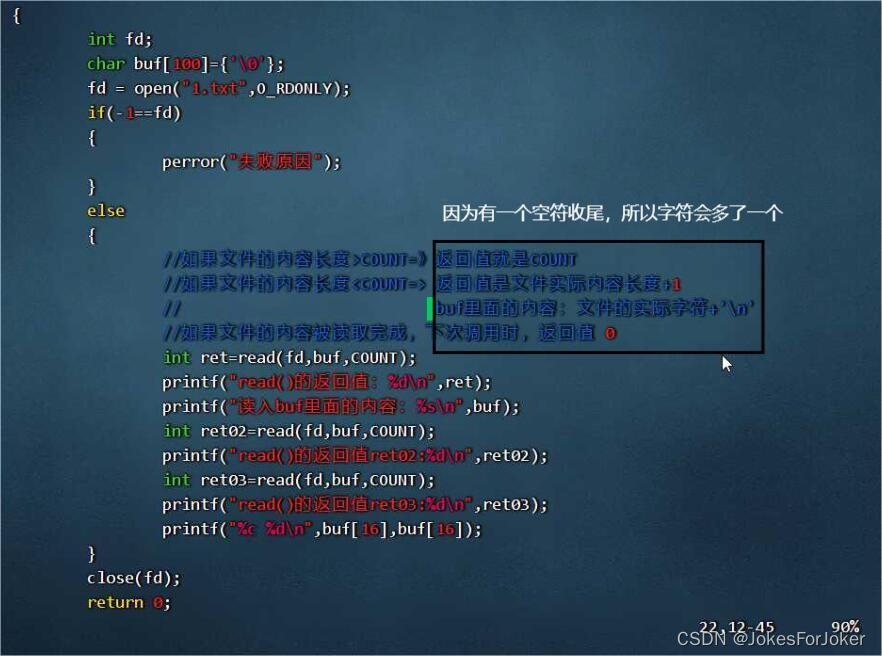 例中表示的是代码段以只读模式打开txt文件1,fd是一个整型,表示对文件的描述: