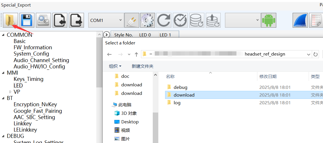 1.1 使用 ConfigTool 打开包含 nvdm.bin 和 filesystem.bin 的文件夹。