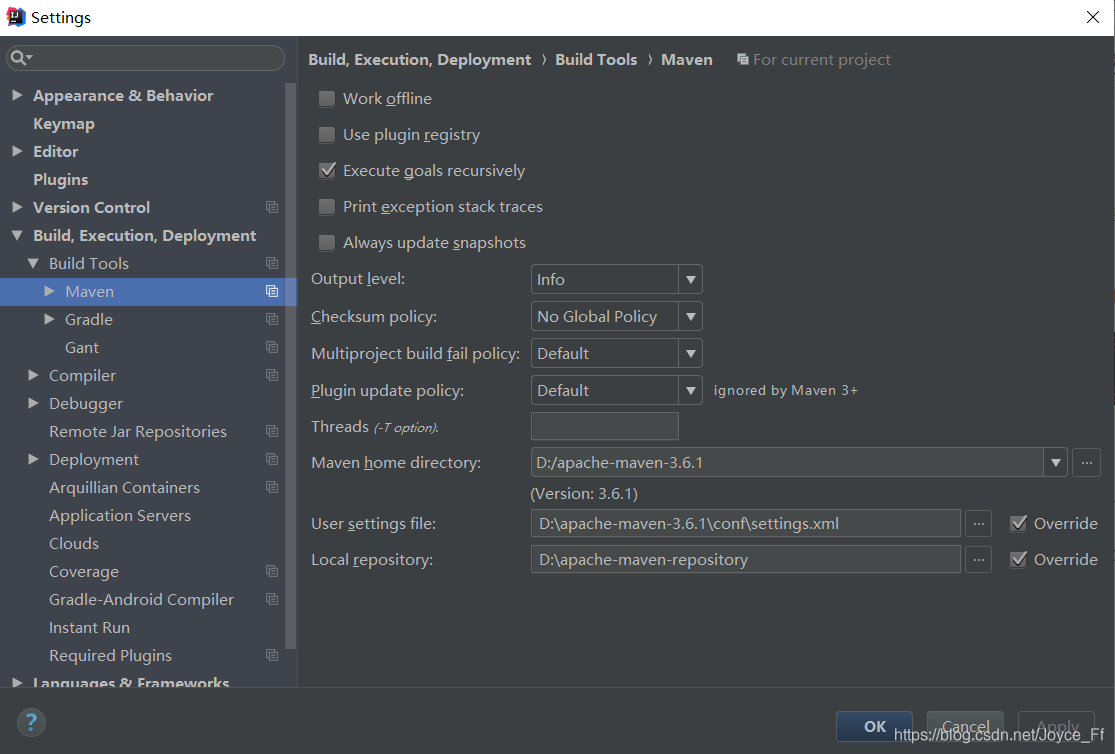 配置Maven:File→Settings→Build,Execution,Deployment→Build Tools→Maven