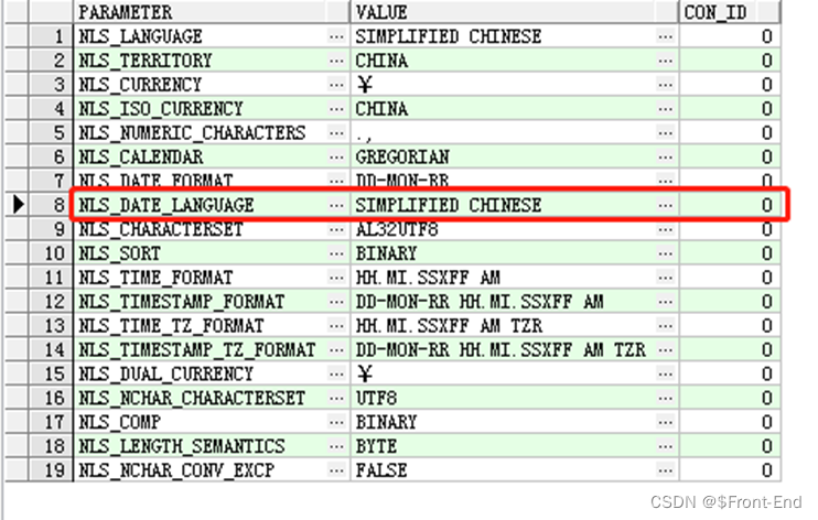 - 执行 select * from V$NLS_PARAMETERS 查看NLS_DATE_LANGUAGE 栏位值是否为american因为01-MAY-22 11.11.11 AM为美国显示格式