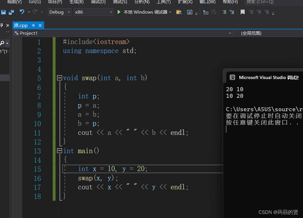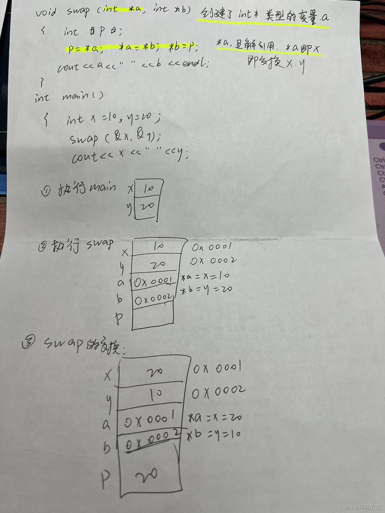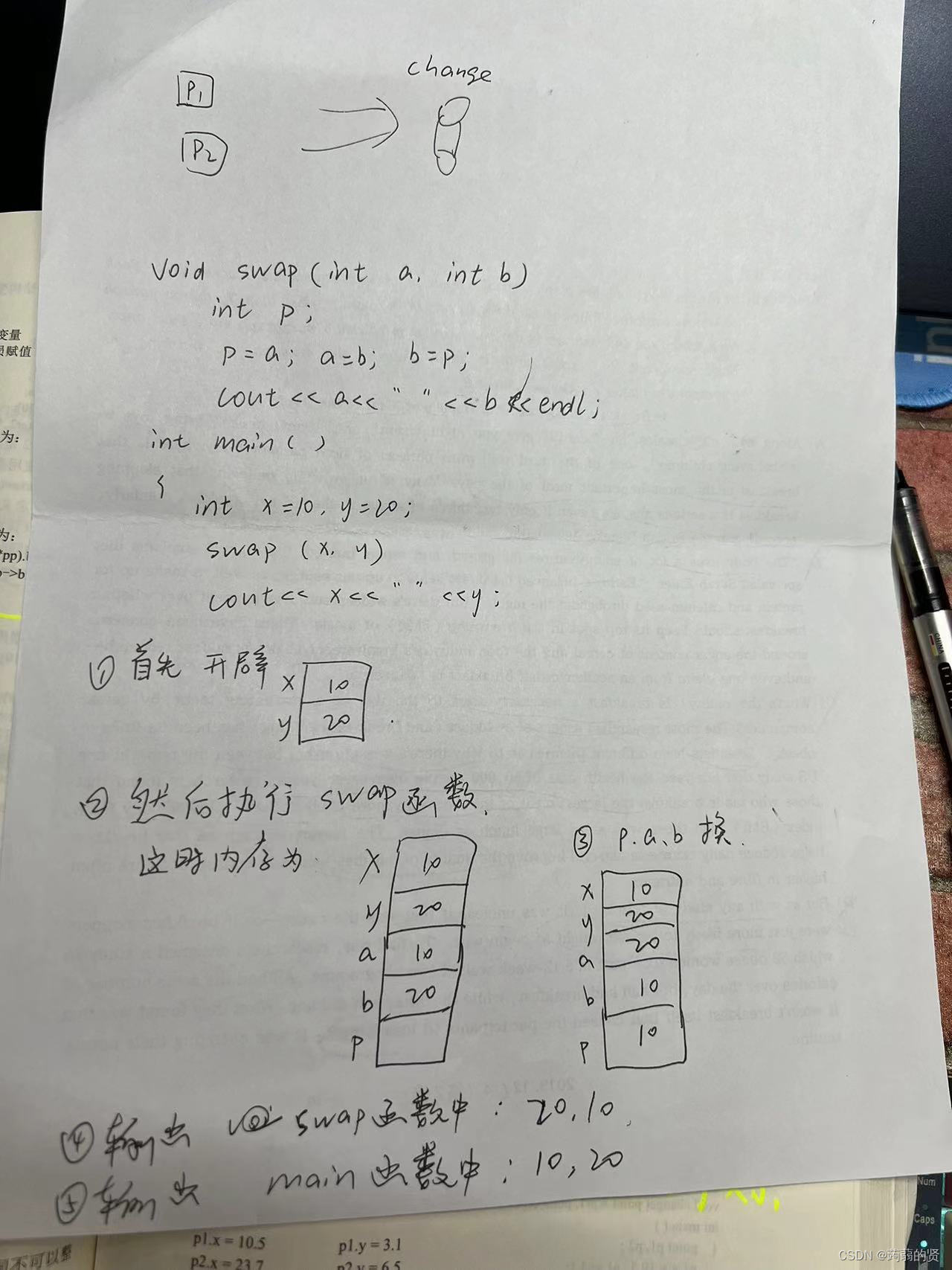 上面的代码是想要交换x,y的值,把x,y传递给swap函数之后,执行下面的操作: