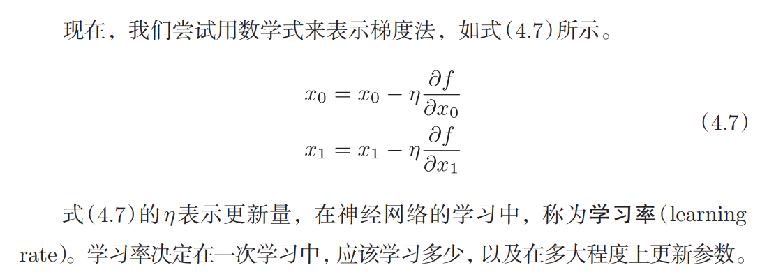 根据目的是寻找最小值还是最大值,梯度法的叫法有所不同。严格地讲, 寻找最小值的梯度法称为梯度下降法(gradient descent method), 寻找最大值的梯度法称为梯度上升法(gradient ascent method)。但 是通过反转损失函数的符号,求最小值的问题和求最大值的问题会 变成相同的问题,因此“下降”还是“上升”的差异本质上并不重要。 一般来说,神经网络(深度学习)中,梯度法主要是指梯度下降法。