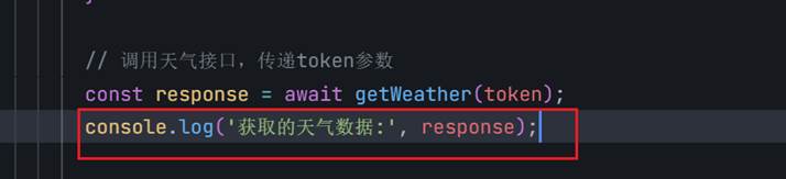 就是如果weatherData.temp不显示,就检查weatherData,如果weatherData不显示,就检查谁给他赋值的。这里就打印一下红框的response.data