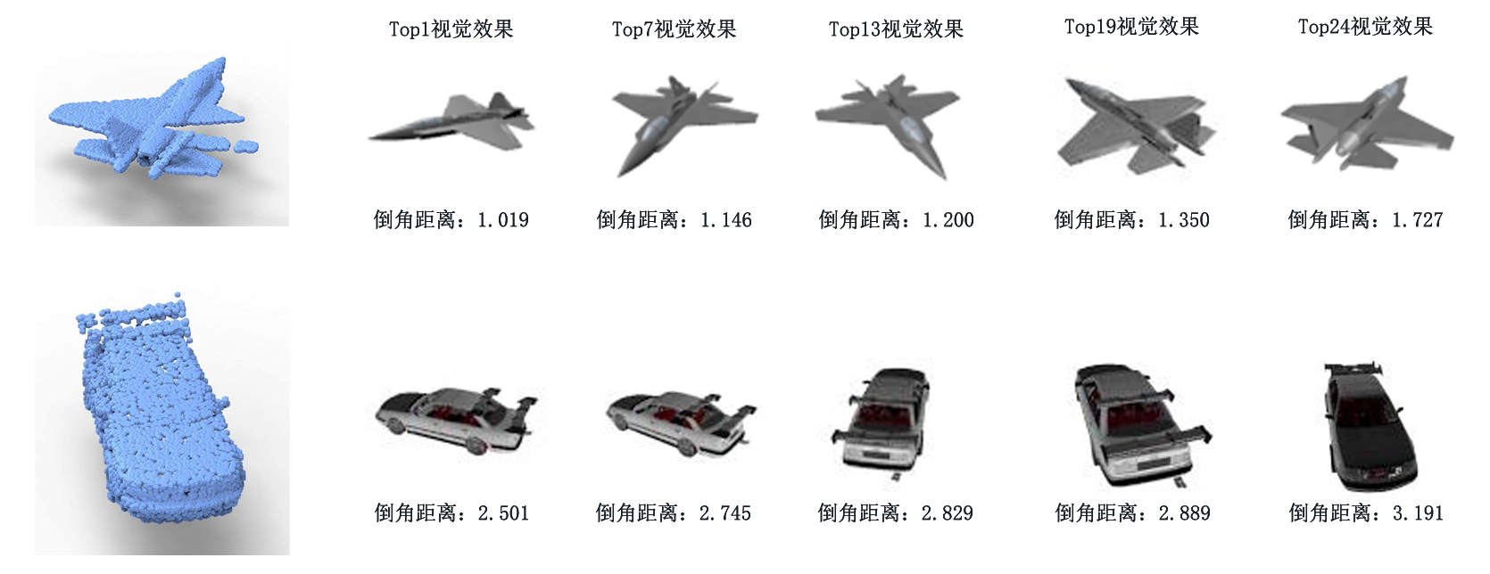 之间的点对点的倒角距离[11]来构建它们之间的对应关系。对于