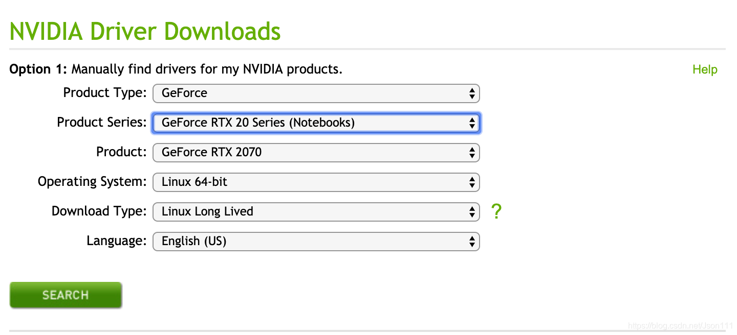 访问网站来下载NVIDIA驱动:https://www.nvidia.com/Download/index.aspx