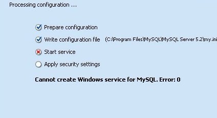 今日,重装MySql 遇到一个错误,安装好运行MySQLServerInstanceConfigWizard,在最后一步却发现无法启动服务,出现这样的提示“cannotcreateWindowsserviceformysql.error:0”