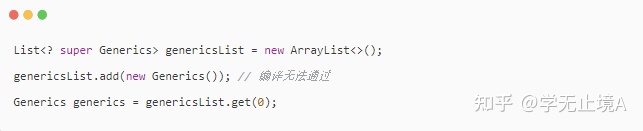 而同理 <? super Generics> 是下边界限定通配符, XX 是 Generics 的父类,所以: