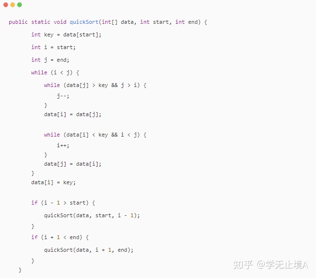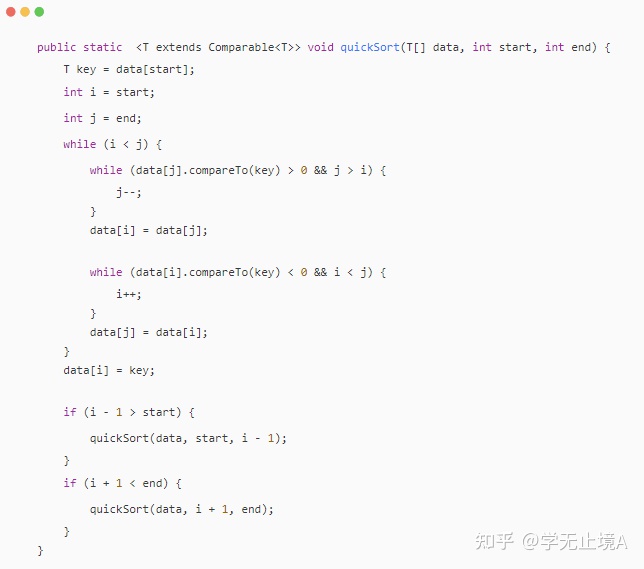 如果想写一个对 int 型数据的快速排序,我们编码为(不是主角,网上随便找的=_=):