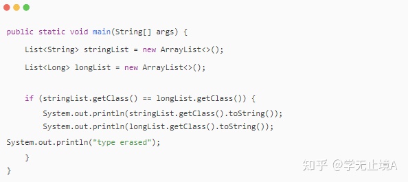 结果 longList 和 stringList 输出的类型都为 class java.util.ArrayList,两者类型相同,说明其泛型类型被擦除掉了。