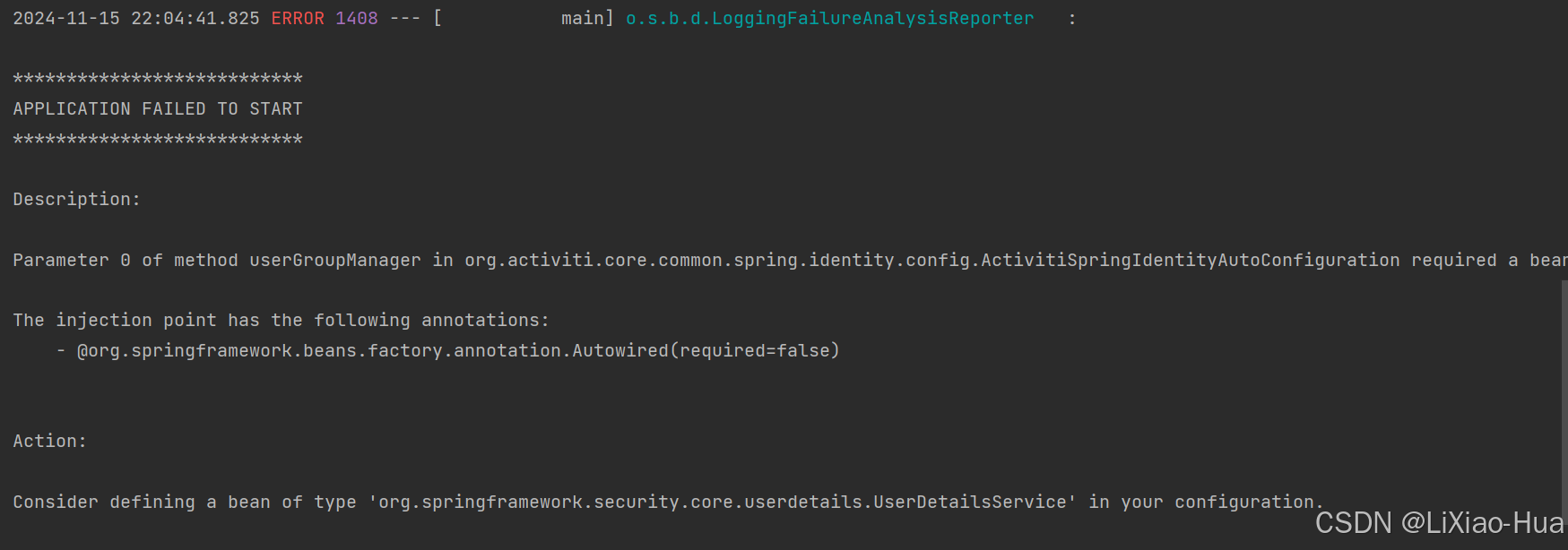 报错信息:Consider defining a bean of type 'org.springframework.security.core.userdetails.UserDetailsService' in your configuration.