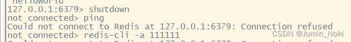 不在cli内部关闭,直接执行该命令:redis-cli -a 111111 shutdown