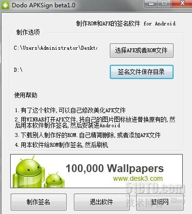 8.使用DoAPK.exe工具中单独制作ROM即APK签名。
