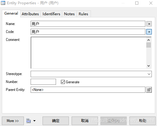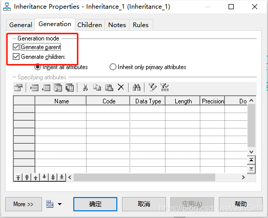 选择gernerate parent(生成父表):父表中生成子表的属性