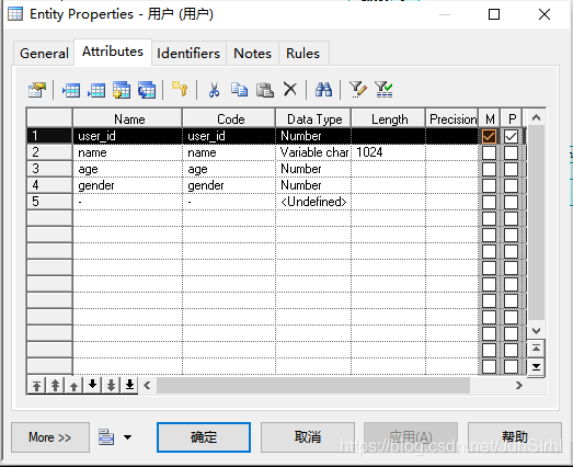 列(Column)是组成表的基本单元,一个表由多个列组成,每个列都有一个数据类型。 CDM中的实体属性通过模型内部生成可以转换成PDM中表的列