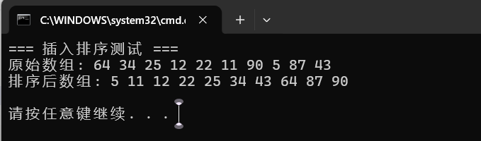 printf("=== 插入排序测试 ===\n");