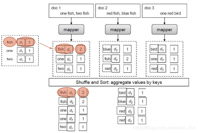 } //最终输出键值对示例:(“fish", “doc1#0; doc1#8;doc2#0;doc2#8 ")