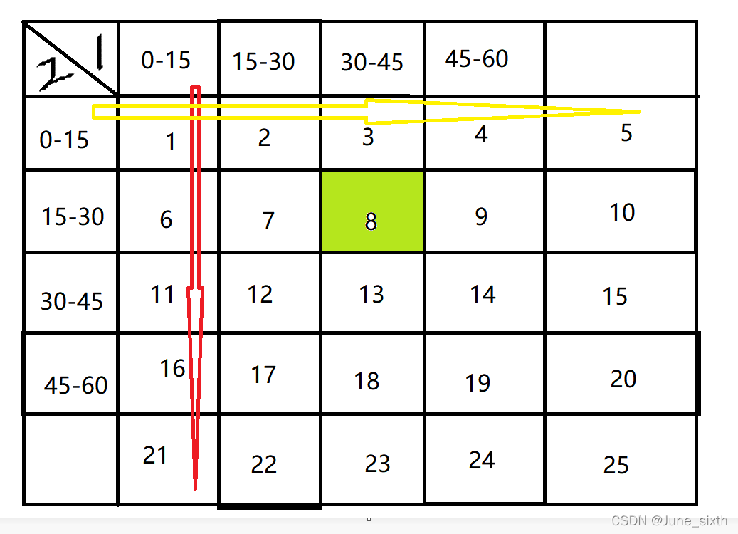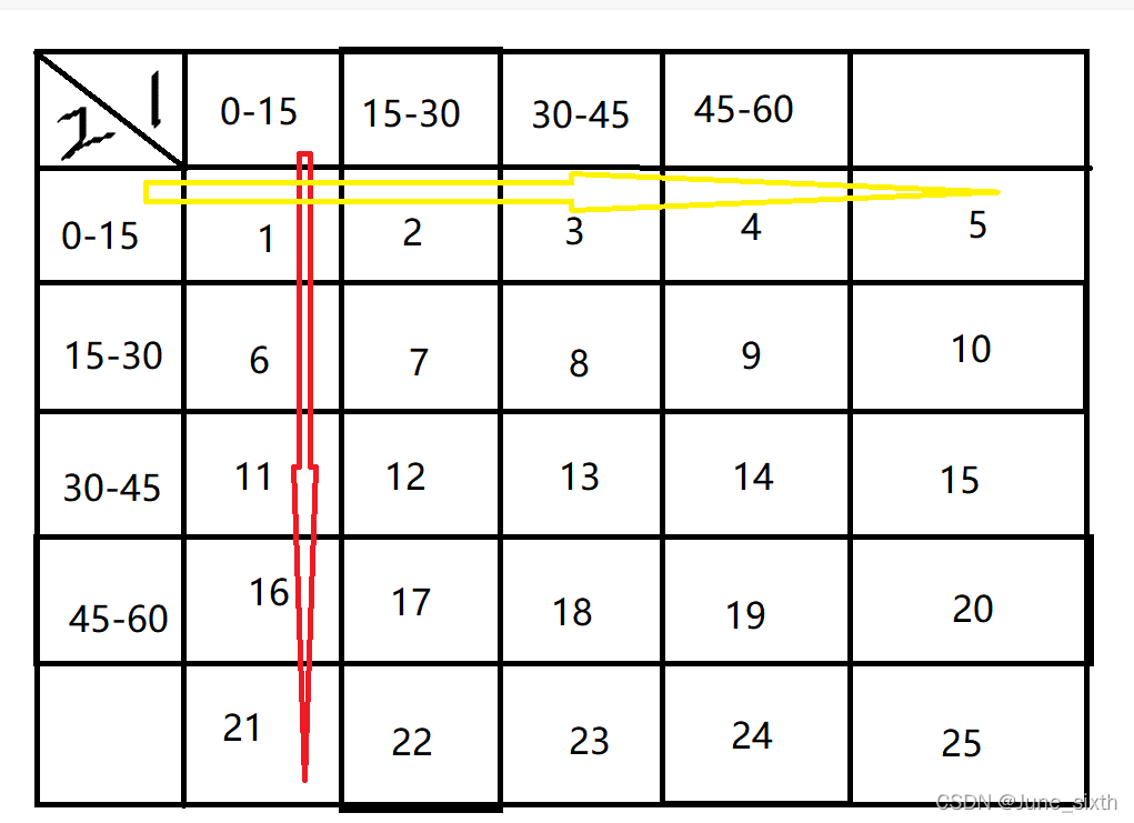 我们讨论这两只猪最多可以检测多少buckets。这时候简单的二分不足以解决问题,考虑到每检测一轮,就可能会有猪有生命危险,如果将每一桶水排列成一个二维矩阵,一只猪以列为单位检索(喝水),另一只猪以行为单位检索,那就可以以时间为坐标轴,两只猪的死亡来确定唯一的坐标,这样就可以确定毒药。