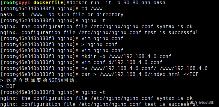 [root@xyy1 dockerfile]#docker run -it -p 90:80 centos_nginx bash