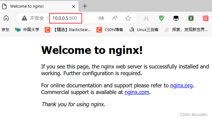 此时在宿主机浏览器访问800端口就可以看到nginx了