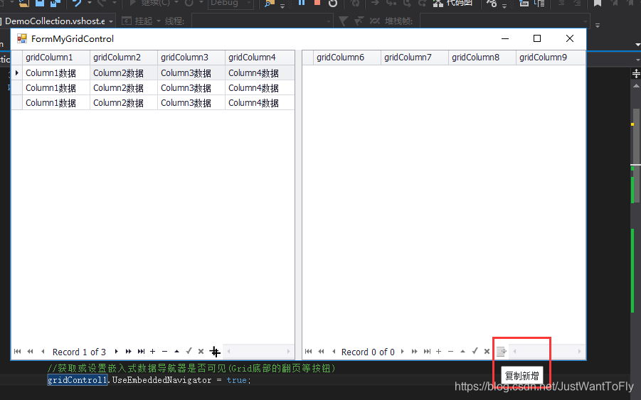 1.为GridControl的底部数据导航器添加自定义按钮