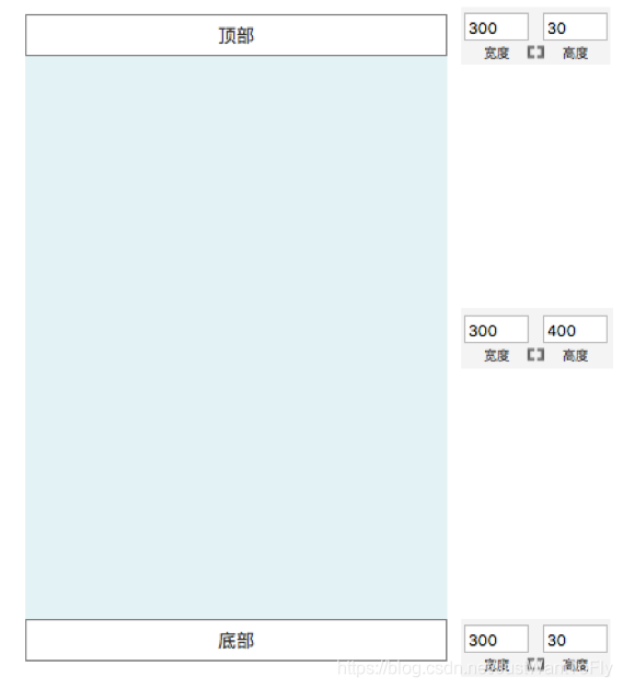 2个矩形(300*30,分别命名为“顶部”、“底部”),动态面板(300*400,命名为“显示区域”)。