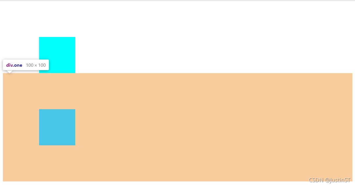 本应该上面div的margin-bottom和下面div的margin-top都为100px,呈现200px的外边距,但是块的上外边距和下外边距会合并为单个边距,取最大值,如果margin相等,则仅为一个,这就是外边距重叠。