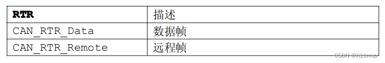 RTR 用来设定待传输消息的帧类型。它可以设置为数据帧或者远