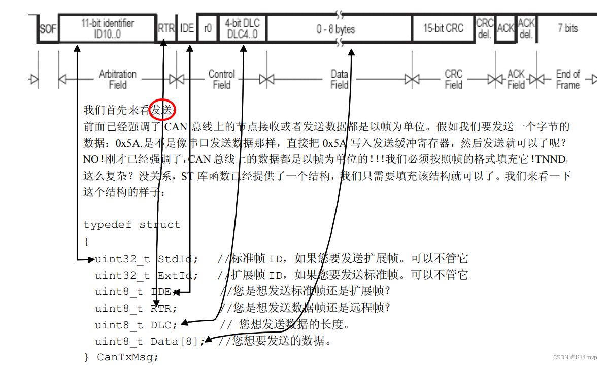 总结: 对于can 通信也只是了解 ,这种通信应用在,电机比较多,can 通信的优点就不说了。 在进行数据通信的时候要严格按照can通信的协议帧来进行发送数据。