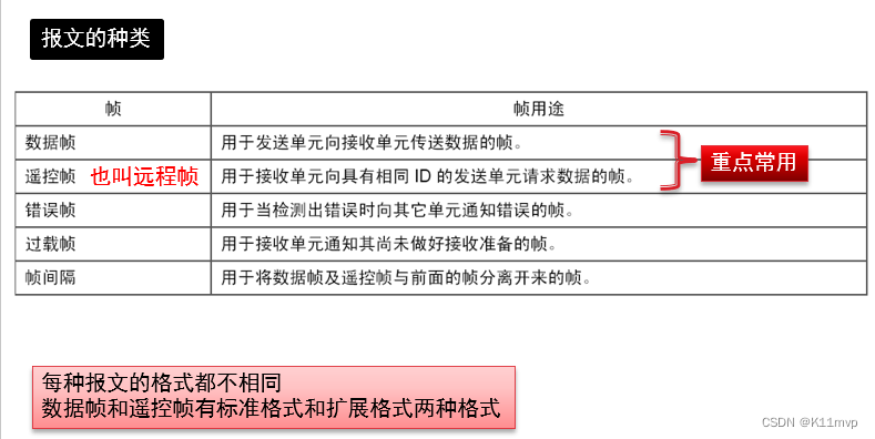 每种发送的数据帧 等其他 都是报文,并且每种的报文的格式也都不相同。