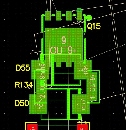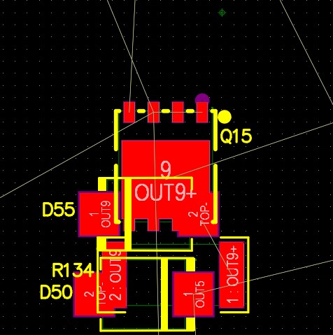最后重新回到PCB设计界面,一般相关重叠元器件会冒绿光报警。如果没有元器件变绿也不需要紧张,有可能是没有元器件重叠和每个元器件都间距合理。当有明显错误却没有报警,则需要将相应元器件移动一下,就会马上冒绿光报警。