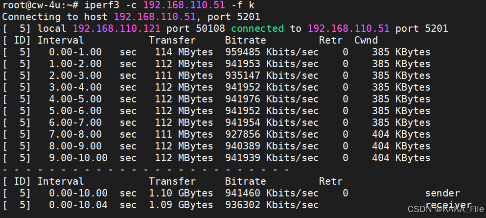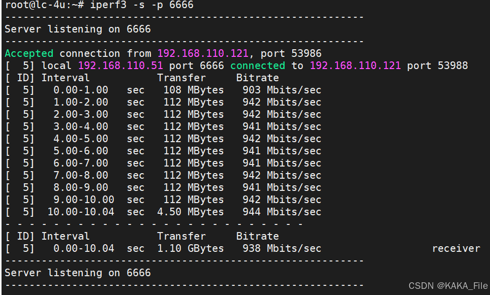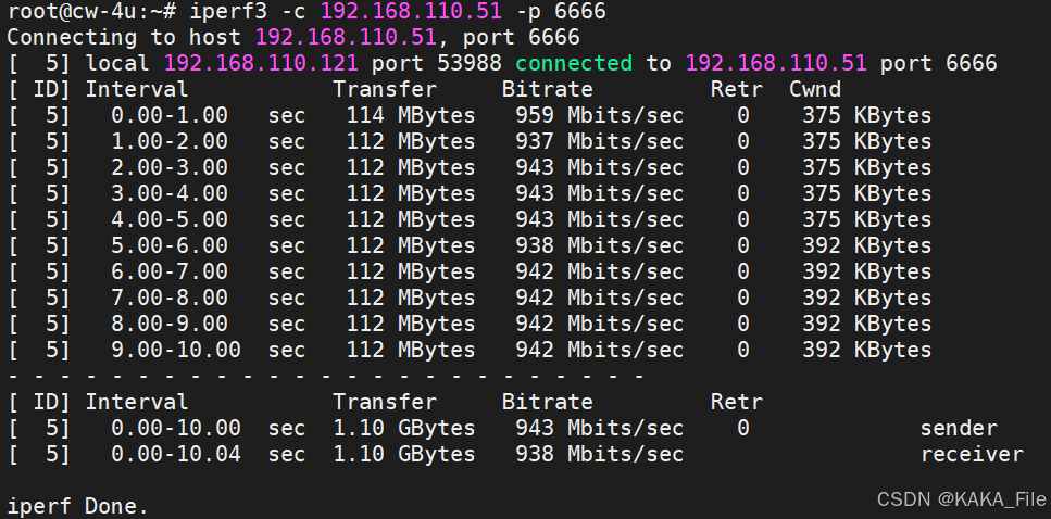 客户端和服务端可以使用不同的参数,按照各自指定的方式打印出带宽测试结果