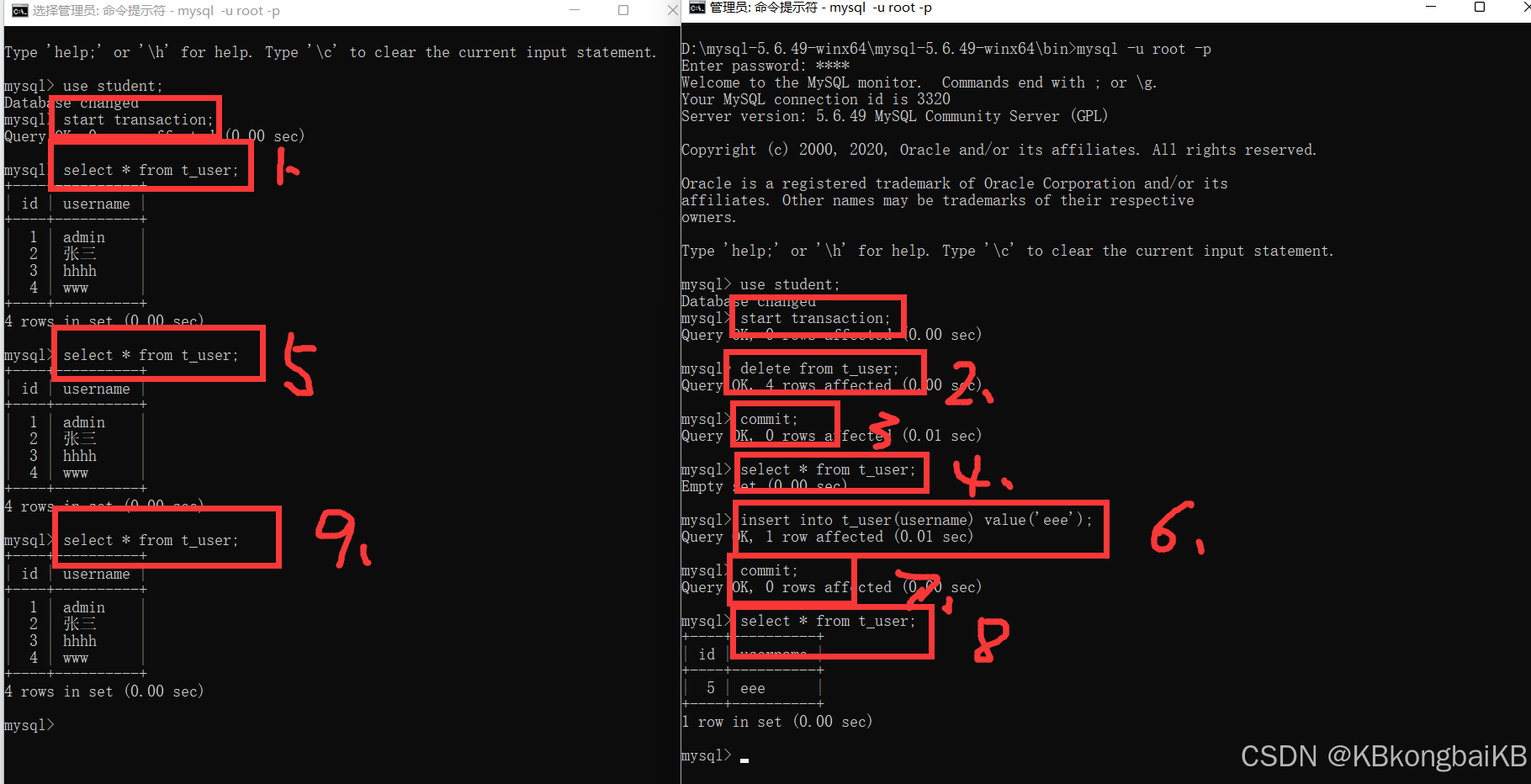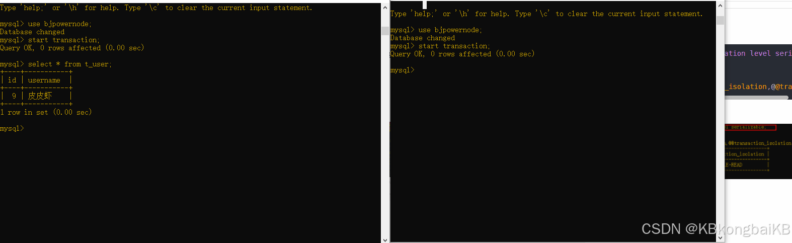 可见,无论是删除还是添加,commit后都是成功的,但是另一边却还是读出原来的数据,这就是可重复读,读取的是备份数据不是真正的数据。