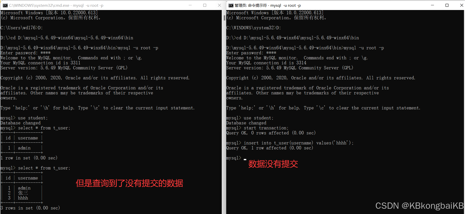 可以看出,插入但没有提交,是读不出来的,提交之后才能读出来。