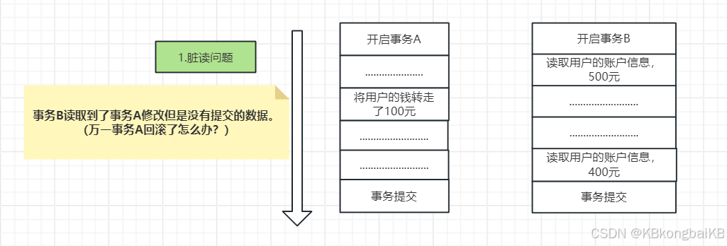脏读:事务A读取到了事务B修改但未提交的数据。