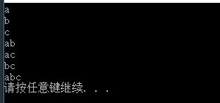题目:输入一个字符串,求字符的所有组合。例如输入字符串abc,则它的组合有a、b、c、ab、ac、bc、abc。