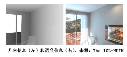 语义驱动:语义驱动在传统的几何为主导的AR中引入语义的概念,其技术核心来源于对场景的语义理解。为什么要语义信息?答案很简单,因为我们人类所理解的世界是充满语义的。如下图所列,我们所处的物理世界不仅是由各种三维结构组成的,更是由诸如透明的窗、砖面的墙、放着新闻的电视等等组成的。对于AR来说,只有几何信息的话,我们可以“把虚拟菜单叠加到平面上”;有了语义理解后,我们就可以“把虚拟菜单叠加到窗户上”,或者邪恶地“根据正在播放的电视节目显示相关广告”。