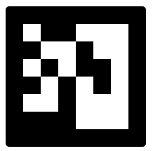 - 二维码:和大家如今广为使用的微信二维码原理一样,二维码主要的功能在于提供稳定的快速的识别标识。在AR中,除了识别以外,二维码还兼职提供易于跟踪和对于平面进行定位的功能。因为这个原因,AR中的二维码比一般的二维码来说模式显得简单以便于精确定位。下图给出了AR二维码的例子。