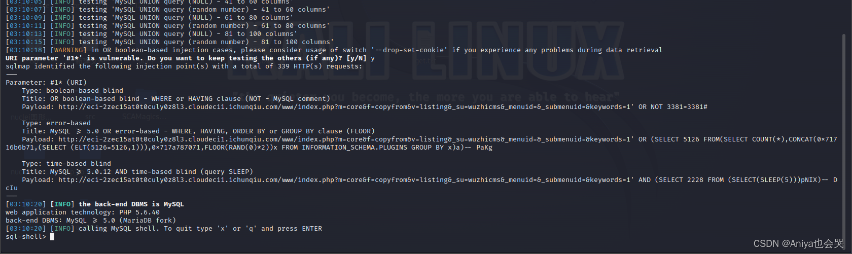 本文描述了一个WuZhiCMS系统中的SQL注入漏洞,开发者在代码中未正确处理用户输入,导致攻击者可通过构造特殊$keywords值进行恶意SQL操作。作者还演示了如何利用弱密码和SQLmap工具进行漏洞利用及获取flag。