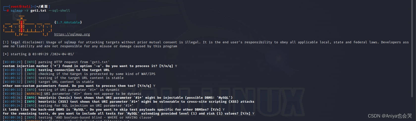 这里抓包 把GET数据包 用SQLmap跑,这里注意下,GET数据包里,keyword=1* 其余删掉 后面的