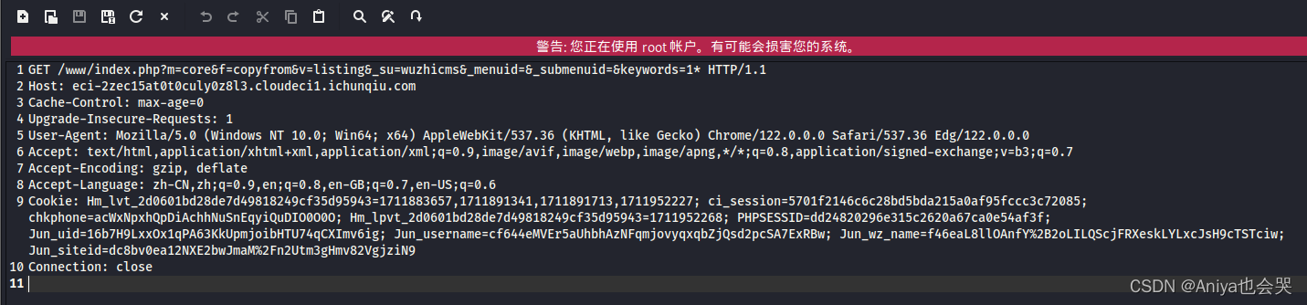 然后直接上Day,有day就打day奥,打出来数据库为wuzhicms,不用我多说了吧直接flag展示奥。