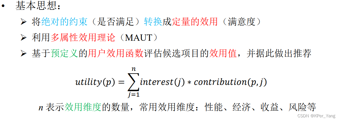 基于效用的推荐需要人工根据领域知识设定不同效用的评分规则和权重占比,只能做粗粒度的推荐。