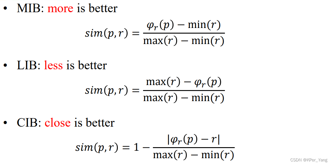 重点在于计算匹配程度sim值。由于项目的不同属性来说,有的是越大越好、有的是越小越好、有的是越接近越好。所以需要分情况计算匹配度: