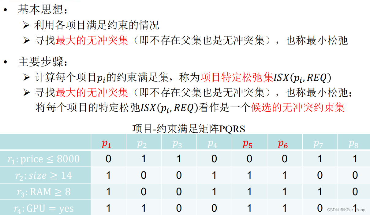 图2.2 项目约束满足矩阵表示,1表示满足,用于直观求松弛集