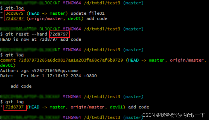 想回退到哪个版本就输入commitID,可以使用git-log 或者 git log 命令查看