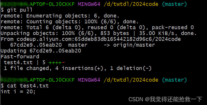 假设在本地仓库创建了test4.txt文件,已经上传到本远程仓库了