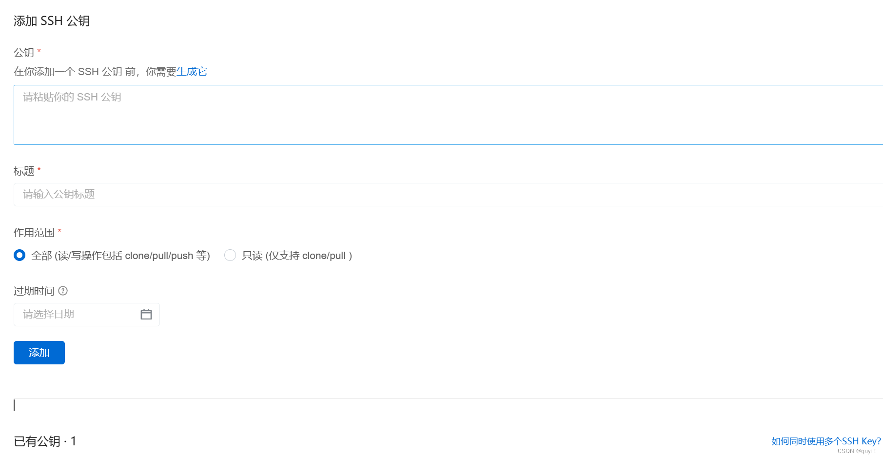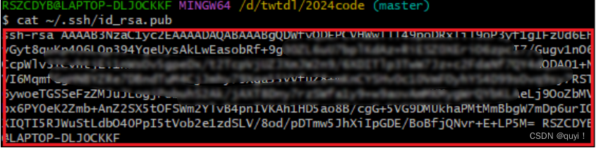 - 获取公钥指令: cat ~/.ssh/id_ras.pub
